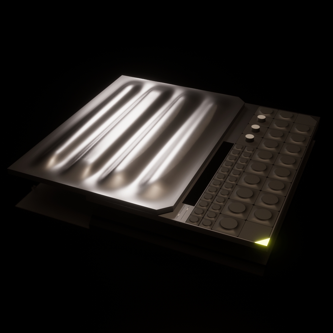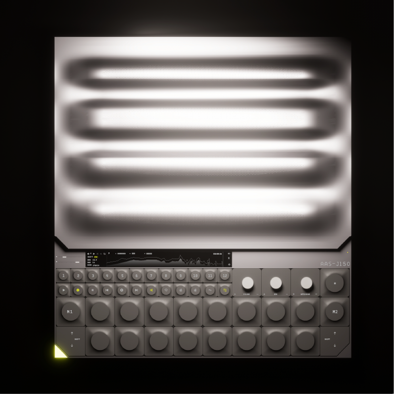 The AAS "Antenna Audio System" – a revolutionary portable synthesizer designed for musicians on the go. Equipped with built-in 3D sound speakers, this device delivers an immersive audio experience. Its unique ripple form factor enhances sound amplification, while the briefcase-style design ensures easy transportation.